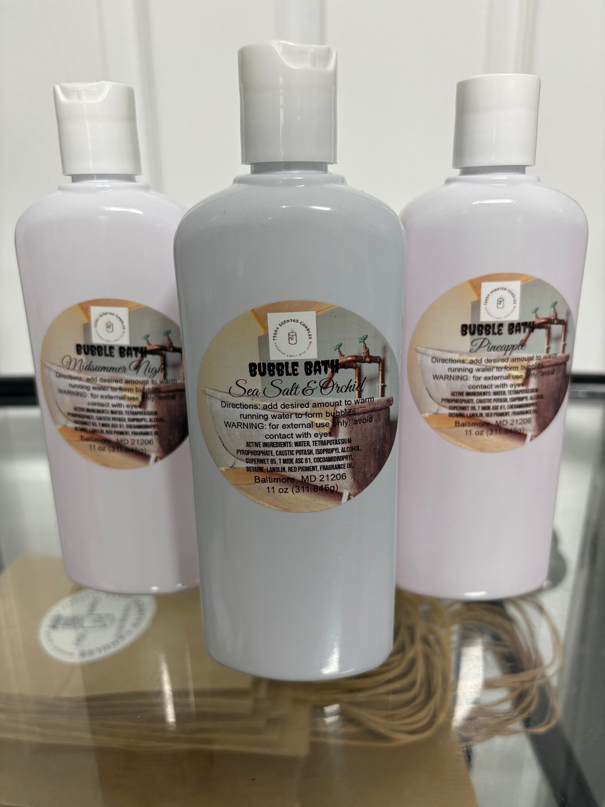 A scented bubble bath soap that fills your tub with rich, long-lasting bubbles while releasing a soothing fragrance. It softens and hydrates the skin, leaving it clean and fresh. It can be made in any fragrance, from fruity to floral.
